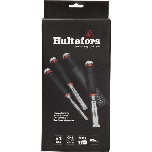 Sett med 4 stemjern og hylster for alle typer arbeider, enten de krever kraft eller presisjon. Smidd i ett stykke med to herdesoner og en I-profil som går gjennom hele håndtaket. Det gir ekstrem bruddstyrke og maksimal kraftoverføring ned i arbeidsstykket.
