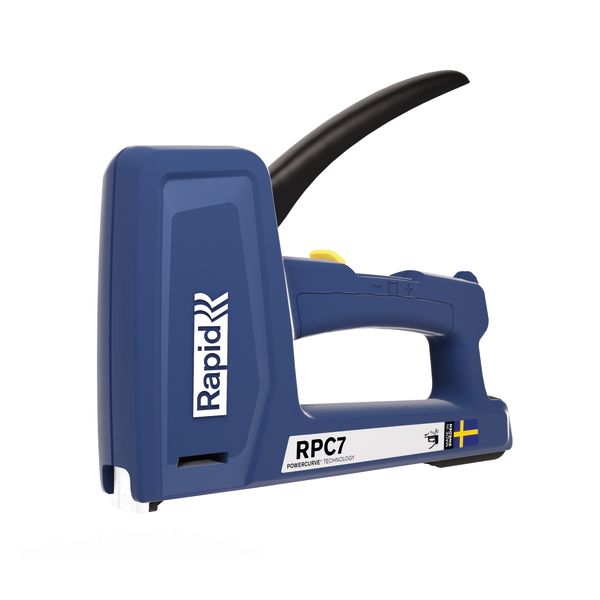 RPC7 kan lades med fintrådstift-, bredtrådstift- og kabelklammer, dykkert og stift. Bruksområdene er derfor mange: tynne trematerialer, masonitt, fuktsperre, dampsperre, dekkplast, lavspenningskabel, møbelomtrekking, stifting av fine og tynne tekstile materialer, enklere snekkerarbeider og arbeid i hagen som nett. Rapids Powercurve Technology reduserer kraften som trengs for å stifte med opptil 50 prosent. Det gjør RPC7 til et verktøy for alle hender – rask og enkel å arbeide med sammenlignet med tradisjonelle stiftepistoler. Slagstyrkeinnstillingen i to trinn hjelper deg også med å optimalisere kraftbehovet avhengig av klammerlengde og materiale. Ergonomiske RPC7 er produsert i Sverige av slagfast ABS-plast med slitedetaljer i stål av høyeste kvalitet. For fintrådstift Nr. 53 og Nr. 13 (6–14 mm), bredtrådstift Nr. 140 (6–14 mm), kabelklammer Nr. 7 og Nr. 36 (12–14 mm), dykkert Nr. 8 (15 mm) og stift Nr. 9 (15 mm).