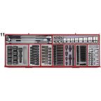 Art.nr: TT14554Verktøysett med 1185 deler plassert i verktøyvogn TCW809N med 9 uttrekksskuffer og toppboks TC810N med 10 uttrekksskuffer.