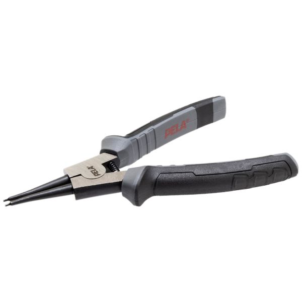 Låseringtang fra PELA med rette kjefter for utvendige låseringer. Et allsidig og pålitelig verktøy for både profesjonelle mekanikere og hobbybrukere. Med en lengde på 150 mm er den konstruert for enkel montering og demontering av rett tilgjengelige låseringer. Den robuste stålkonstruksjonen gir lang levetid og god motstand mot slitasje. Verktøyet har ergonomiske håndtak med sklisikker overflate, som gir et stabilt og komfortabelt grep selv ved lengre tids bruk. Låseringtangen er godt egnet for låseringer på vanskelig tilgjengelige steder, noe som gjør den spesielt nyttig ved reparasjon av motorer, girkasser, transmisjoner og andre mekaniske komponenter. De presise spissene gjør det enkelt å håndtere små låseringer uten risiko for at de bøyes eller skades. Dette er et svært nyttig tilskudd til enhver verktøykasse for vedlikehold og reparasjon.