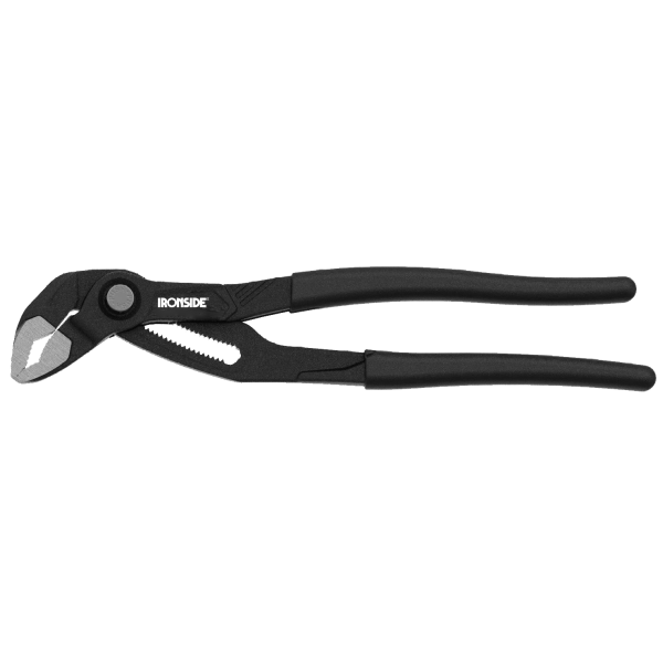 Kromvanadiumstål. Med knapp for hurtiginnstilling. Riflete alligatorkjever. Plastbelagte håndtak.