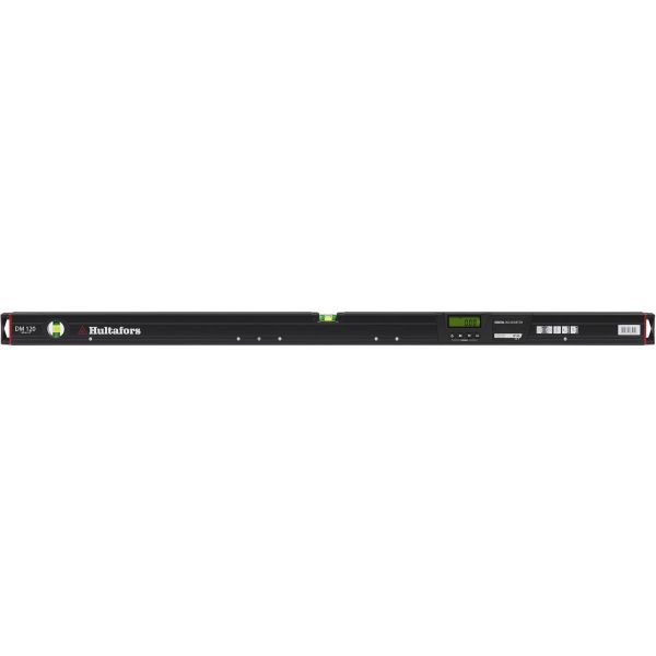 Hultafors DM 120 er en digitalt vater med robust aluminiumsprofil og integrert digital enhet for enkel måling av stigning/helling. Måleområdet er 360° og inndelt i fire 90°-soner. Libellene er bestandige mot ultrafiolett lys og temperaturendringer. Libellene har +30 % forstørrelsesglass og horisontallibellen har en selvlysende reflektor. Enkelt batteribytte og automatisk avstenging etter 5 min.