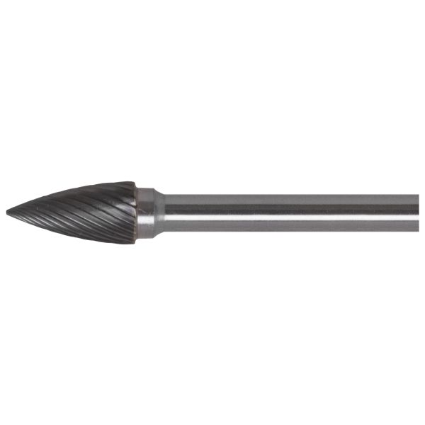 Spisset form. Gir god tilkomst i spor og innvendige hjørner. Mediumtannet med sponbryter. Hardmetall.