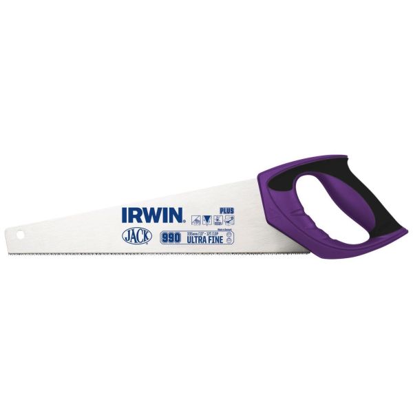 Håndsag fra Irwin med ultrafin dobbeltslipt tanning (12 TPI/13P) og en lengde på 325 mm.