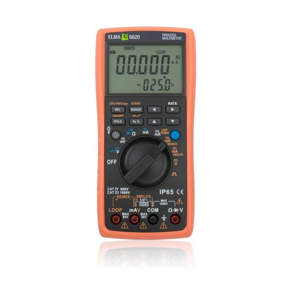 Elma 6620 kan simulere signaler i både aktive og passive kretser. I begge tilfeller kan 4–20 mA utgangssignal stilles inn i trinn på 25 %, og strømmen finjusteres ned til 0,001 mA. Trinn- og rampfunksjoner muliggjør automatisk trinnvis eller glidende regulering av utgangsstrømmen. Med Elma 6620 som kilde kan passive kretser i tillegg påtrykkes 1–10 VDC eller et frekvenssignal. Elma 6620 har også loop power-funksjon.