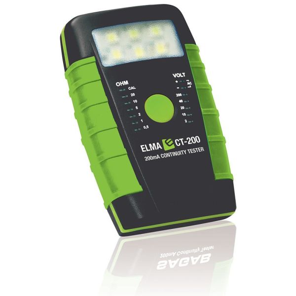 Elma CT-200 er en smidig, robust og svært nøyaktig kontinuitetstester med innebygd spenningstester og kraftig lommelykt. Instrumentet passer perfekt for kontroll av beskyttelsesledere og potensialutjevningsledere.