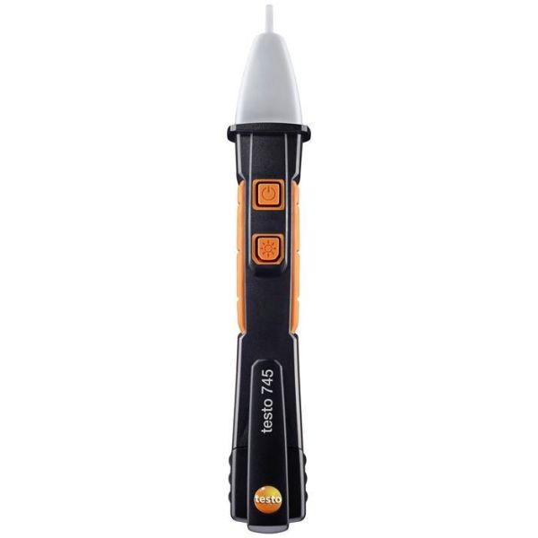 Testo 745 er en berøringsfri spenningstester med målepunktsbelysning og et spenningsområde på opptil 1000 V. Passer for rask innledende kontroll av mistenkte feilkilder. Testo 745 har en tydelig lys- og lydindikering, som aktiveres når det finnes spenning. For å øke påliteligheten filtrerer spenningstesteren bort høyfrekvente støysignaler og er dessuten vanntett og støvtett i henhold til kapslingsgrad IP 67. Testo 745 har målene 155 x 25 x 23 mm og er egnet for bruk i temperaturer mellom -10 og +50 °C.
