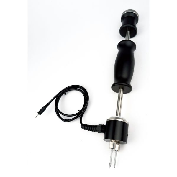 Art.nr: 4088738Hammerelektrode for Elma Moisture Max er et robust tilbehør for nøyaktig fuktmåling i tre og byggematerialer. Elektroden kobles direkte til Moisture Max og muliggjør dyptgående fuktmålinger ved hjelp av utskiftbare nåler som slås inn i materialet.
