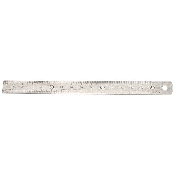 Art.nr: 3117437PELA 76400 er en stållinjal som er gradert i millimeter på den ene siden og tommer på den andre siden. Tykkelse: 0,7 mm, bredde: 30 mm.