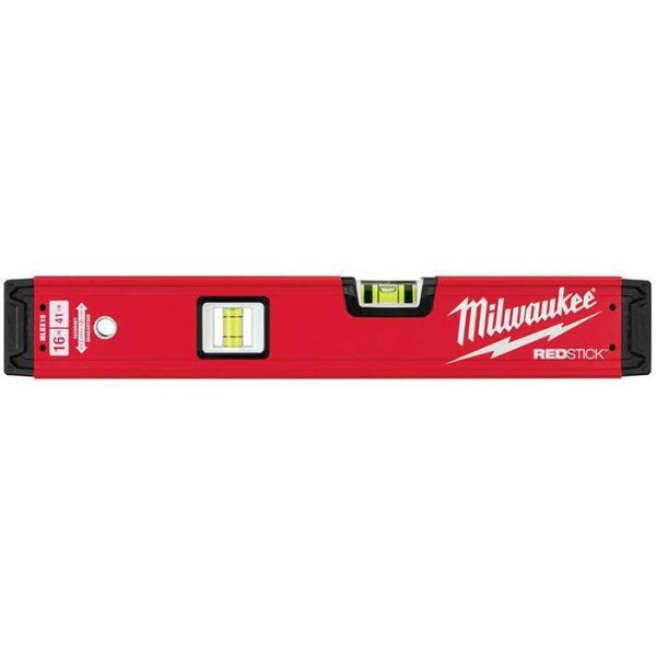 Milwaukee REDSTICK BACKBONE er et vater på 40 cm, uten magnet. Utstyrt med blokklibelleteknologi som forbedrer avlesningen av libellen og en nøyaktighet på 0,029°.