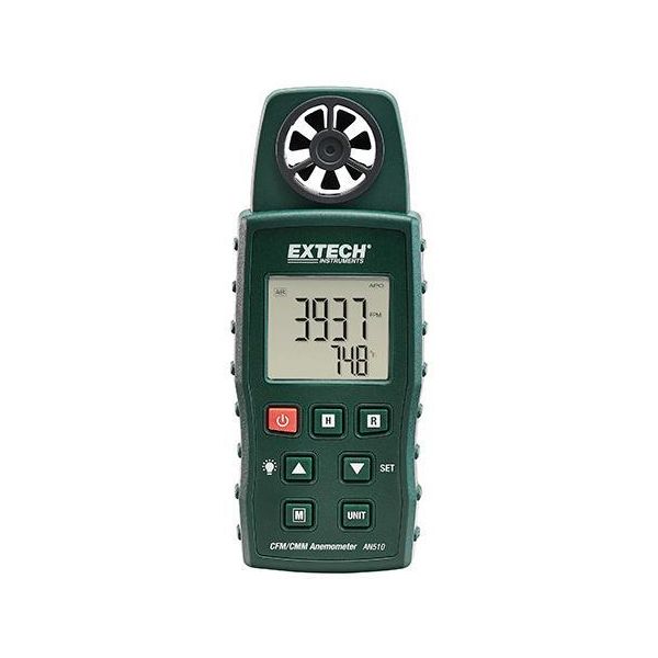 Extech AN510 er en 4-i-1 luftgjennomstrømningsmåler som måler lufthastighet, luftgjennomstrømning, lufttemperatur og type K-temperatur. Måleren har et innebygd kulelager med lavfriksjonsklaff for høy presisjon.