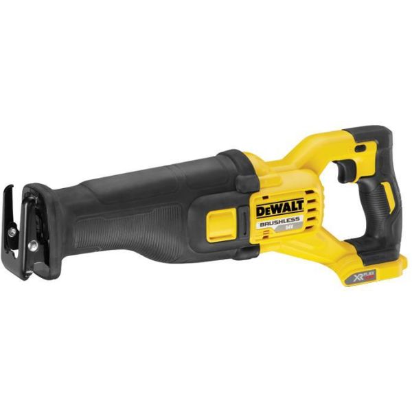 DEWALT DCS388 er en tigersag på 54V med slaglengde på 28,6 mm og høyt turtall på 3000 slag/min for effektiv saging. Nøkkelfritt sagbladbytte for raskt bladbytte uten nøkkel.