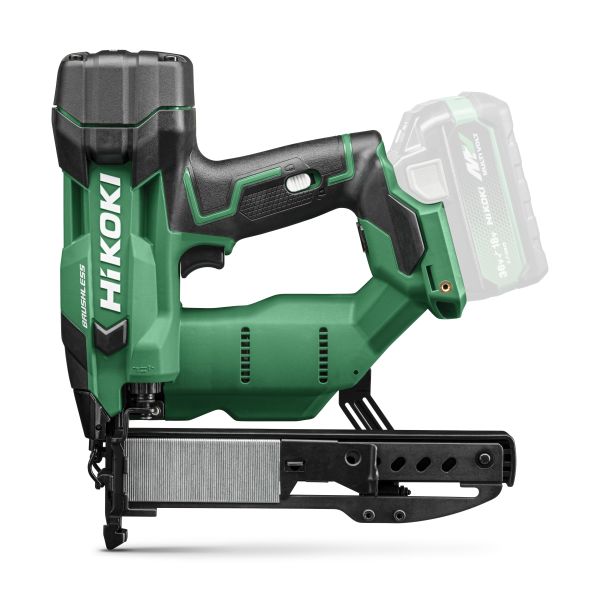 Kompakt klammereverktøy fra HiKOKI med lav vekt, uten behov for kompressor, slange eller gass, for feste av lister, panel, gulv, til møbelreparasjon m.m. Unikt drivsystem med komprimert luft gir ytelse som tilsvarer et pneumatisk verktøy og gir svært god skytekomfort med lav rekyl og lavt støynivå. Stabil og jevn ytelse også ved lave temperaturer eller i stor høyde. Skyter klammer med lengde 15–40 mm (bredde 5,6 mm). Rask i bruk med lang driftstid; avfyrer 2 klammer per sekund og opptil 1000 klammer per oppladet batteri (2,0 Ah BSL1820M). Enkel dybdejustering uten verktøy. Kan stilles inn for enkelskudd eller kontaktaktivering, med låsbar bryter som forhindrer utilsiktet avfyring. Børsteløs motor gir lengre driftstid per lading, lengre levetid og minimalt vedlikehold av motoren. Ingen periodisk rengjøring er nødvendig. Utstyrt med praktisk beltekrok, batteriindikator som viser batterinivå, integrert LED-lys. Kan brukes med både 18V- og MULTI VOLT-batterier. Leveres med panelfot, vernebriller, beltekrok, stablebar oppbevaringskoffert (HSC3), uten batteri og lader.