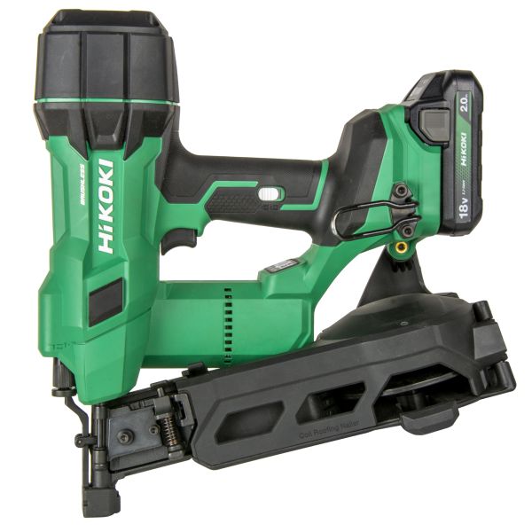 Hikoki NV1845DA er et kompakt 18V pappspikerverktøy med lav vekt, uten behov for kompressor, slange eller gass. Effektiv børsteløs motor som gir lengre driftstid, økt levetid og minimalt vedlikehold. Har kapasitet og driftssikkerhet for en rekke ulike arbeidsoppgaver. Støv- og partikelsikret design beskytter drivmekanismen. Utstyrt med innebygd temperatursikring som slår av verktøyet når maskinens temperatur blir for høy eller for lav. Låsbart bryter samt blokkeringsfunksjon for å forhindre utilsiktet avfyring. Unikt isolert trykkluftsystem med komprimert luft som gir optimal kraft og meget god skytekomfort med lav rekyl og lavt lydnivå. Batteri med innebygd indikator for batterinivå, som lades fullt på 30 minutter med medfølgende lader.