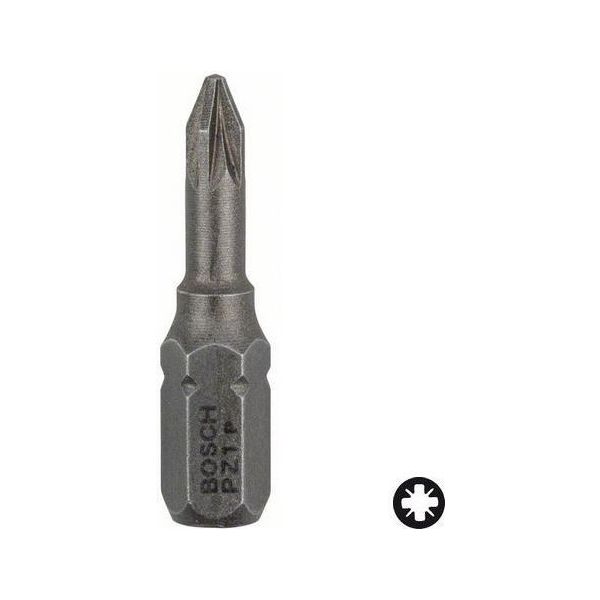 Ekstra harde PZ1 stjernekruebits på 25mm. Utvendig 1/4" sekskantskaft ISO 1173 C6.3.