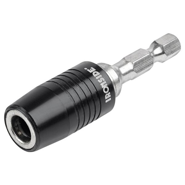 Kraftbitsholder med hurtigskiftechuck og kraftig ringmagnet som holder skruen på bitsen. Autostoppfunksjon ved riktig dybde. For 25 mm 1/4" bits. Festes direkte i skrutrekker. Lengde 50 mm.