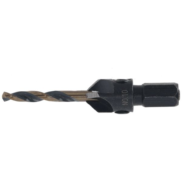 Art.nr: 4076882PILOTHULLBOR MED FORSENKNING: Holder den koniske avfasinga sentrert på klaringshullet. BRUKES MED «FLIP AND DRIVE»-KOBLING: Bor pilothull, forsenk og snu deretter for skruing, alt uten bytte av chuck.