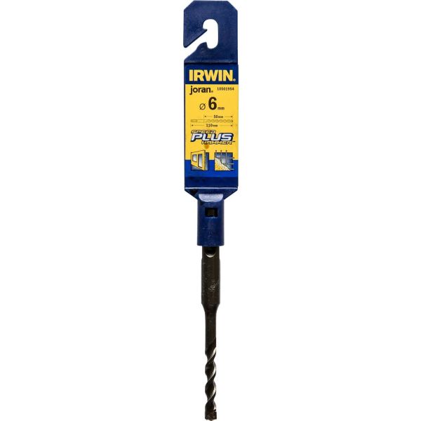Speedhammer Plus-bor fra Irwin som har en diameter på 6 mm og er konstruert for boring i betong, murverk, tegl, blokk og granitt. Den nye og innovative spiraldesignen med 28 % større spiralkapasitet sikrer en ekstra rask og komfortabel boring. Fjerner raskt borestøv. Takket være spiralen som gjør at borestøvet ikke klumper seg, fungerer boret optimalt i betong som ikke er helt herdet.