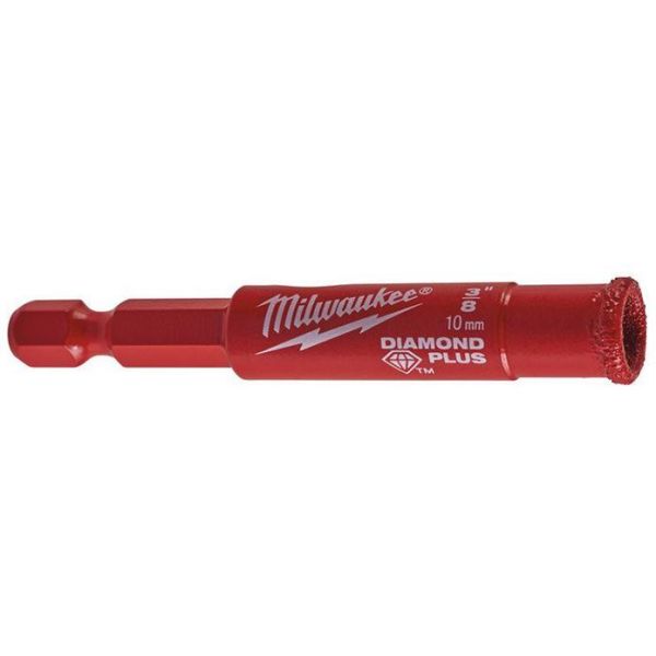 Milwaukee DIAMOND PLUS er en 1/4" Hex diamantbor med dimensjonen Ø10 mm. For boring i ekstremt harde materialer som porselen, byggestein, støpejern eller fiberglass.