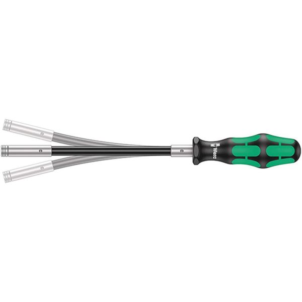Wera 393 S er en bits skrutrekker med et fleksibelt blad for å nå punkter som er vanskelige å nå ellers. Takket være designet med en spesielt slank bitsholder, kan forskjellige skrueprofiler også brukes på svært trange steder. Kraftformgrep med flere komponenter for høy arbeidshastighet og svært ergonomisk skruearbeid. Med sekskantet rullestopp mot iveirulling.