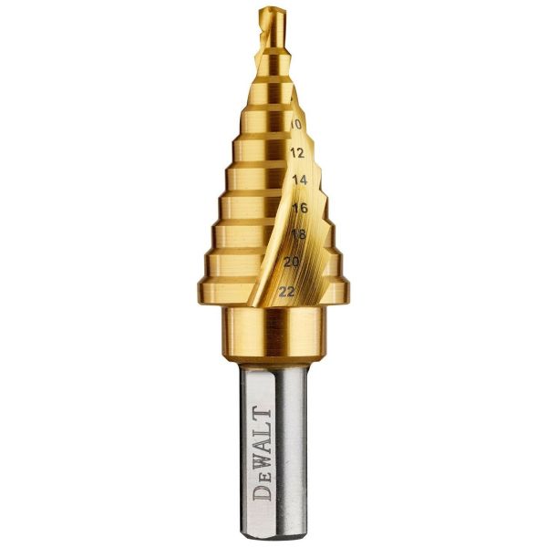 EXTREME trinnbor i titan med dobbeltsporet spiral for økt holdbarhet og optimert støvfjerning.Tilpasset for slagskrutrekker og skrutrekker.Kan forstørre hull i metall mellom 4 og 22 mm.