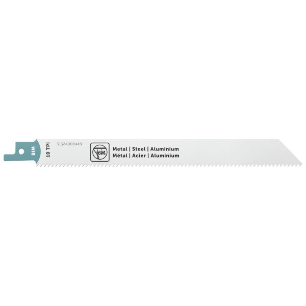 Fein bajonettsagblad for metall – et fleksibelt universalblad for stål og rustfritt stål (3–12 mm) samt ikke-jernholdige metaller. Bladet kjennetegnes av freste, tannsetede tenner som gir effektive kutt og lang levetid.