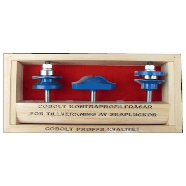 Cobolt fressett i et komplett sett for produksjon av skap- og kjøkkendører med ramme og flytende speilfylling.