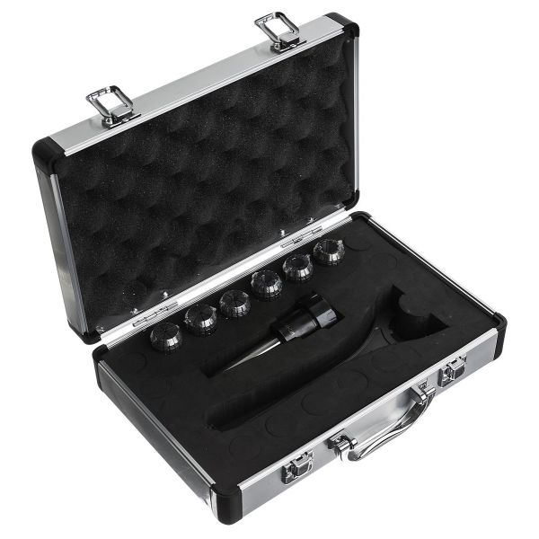 PELA 78010 er et freseverktøysett med spennhylser. ER40 inneholder chuck, mutter samt 15 stk. dobbelslissede hylser 4, 5, 6, 8, 10, 12, 14, 15, 16, 18, 20, 22, 24, og 26 mm i plastboks.