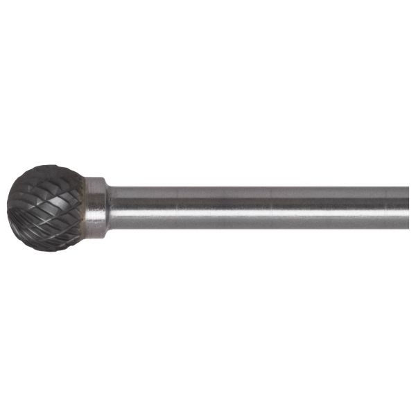 Kuleformet. For avgrading av sveisefuger og hull på bl.a. avrundede overflater. Mediumtannet med sponbryter. Hardmetall.