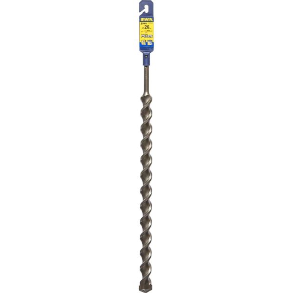 Irwin Speedhammer Plus-bor på Ø 26 mm som er konstruert for boring i betong, murverk, tegl, blokk og granitt. Den nye og innovative spiraldesignen med 28 % større spiralkapasitet sikrer en ekstra rask og komfortabel boring. Fjerner raskt borestøv. Takket være spiralen som gjør at borestøvet ikke klumper seg, fungerer boret optimalt i betong som ikke er helt herdet.