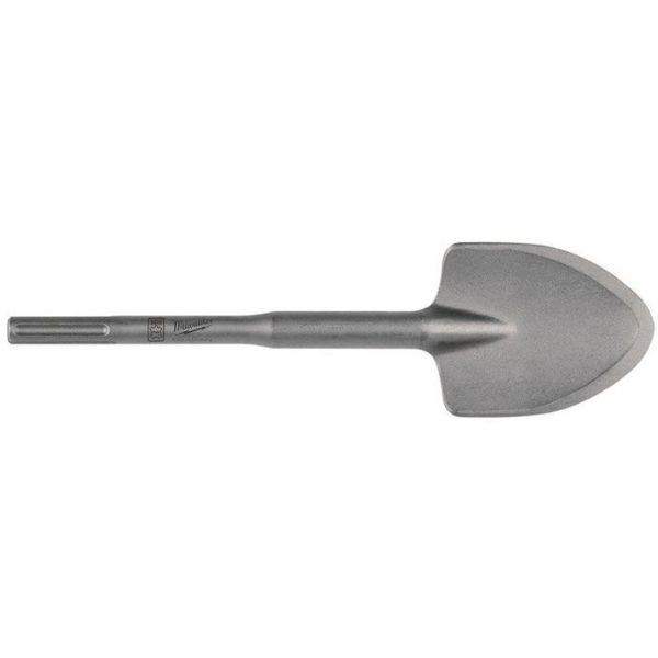 Milwaukee 4932343747 er en spademeisel på 400x110 mm med SDS-Max-feste. Spademeiselen har en spiss egg, noe som gjør den egnet for graving i kalk, singel og skifer.