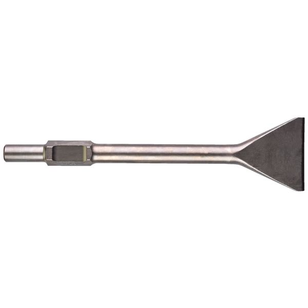 Milwaukee spademeisel på 400 x 125 mm for jordarbeid og veibygging, dvs. graving i hardpakket jord, leire og grus. Meiselen har 30 mm sekskantfeste.