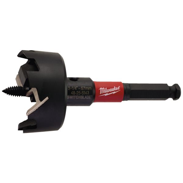 Trebor fra Milwaukee på Ø57 mm med 7/16" sekskantfeste samt aggressive skruer gjør at boret trekker raskere gjennom treverket, noe som resulterer i raskere boring. De utskiftbare innsatsene i SWITCHBLADE boret gjør at du alltid har en bor som er som ny. Dette eliminerer behovet for ettersliping og øker dermed produktiviteten. Passer for alle håndverkere, elektrikere, rørleggere og rørleggere som skal bore hull i tre til alle typer rør, ventiler og kabelkanaler.