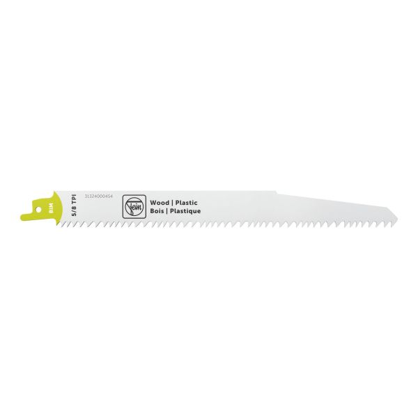 Fein bajonettsagblad for tre og plast – egnet for tre med metallrester. Bladet har en ekstra sterk og robust konstruksjon med freste, set­tede tenner som gir rette, raske kutt og lang levetid. Særlig velegnet for rivearbeid, demontering og redningsarbeid. Leveres i pakning à 3 stk.