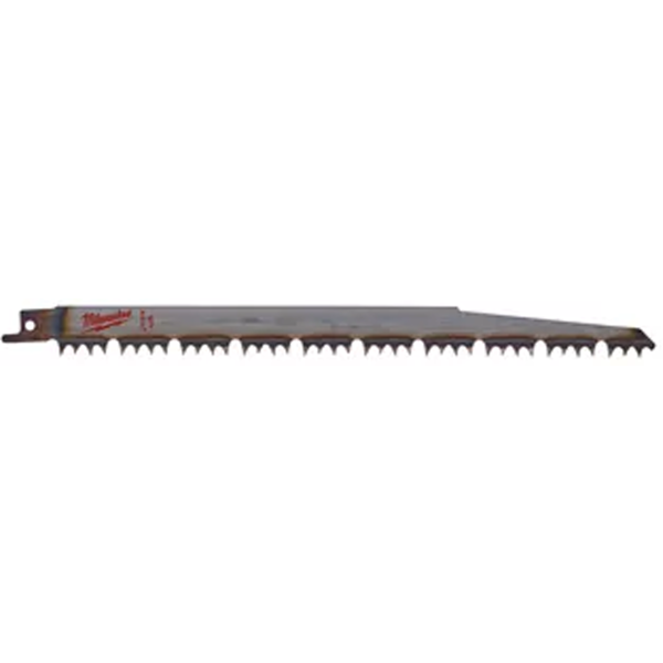 Milwaukee 240 x 4/5 Tpi er et 240 mm langt tigersagblad laget av HCS med maksimal kappekapasitet i tre på 15 - 190 mm. Konisk slipte tenner for ekstrem skarphet og rask saging med rene kanter i spikerfritt tre og plast.