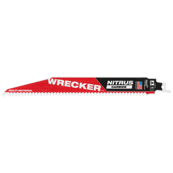 Milwaukee TCT WRECKER NITRUS er et bajonettsagblad med NITRUS CARBIDE-tenner som gir opptil 3 ganger lengre levetid sammenlignet med hardmetallblad i multimaterialapplikasjoner, eller opptil 100 ganger lengre levetid sammenlignet med standard bimetallblad.