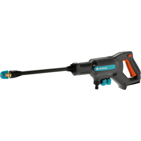 GARDENA AquaClean er en mobil, kompakt og trådløs høytrykksspyler for hjemmet og hagen. Vanntrykket kan justeres i tre trinn. Sta skitt og tunge flekker fjernes forsiktig med et gjennomsnittstrykk på 24 bar. Trykket kan reduseres til 14 bar etter behov. Den praktiske Soft-Clean-modusen reduserer trykket ytterligere, og ved 9 bar er bruken ekstra skånsom. I tillegg resulterer det reduserte trykket i lavere energiforbruk og dermed lengre batterilevetid. Dette betyr at den mellomliggende høytrykksvaskeren kan fungere i omtrent 38, 20 eller 16 minutter, avhengig av driftsmodus. Du kan sjekke batteristatusen ved hjelp av LED-skjermen på enheten.