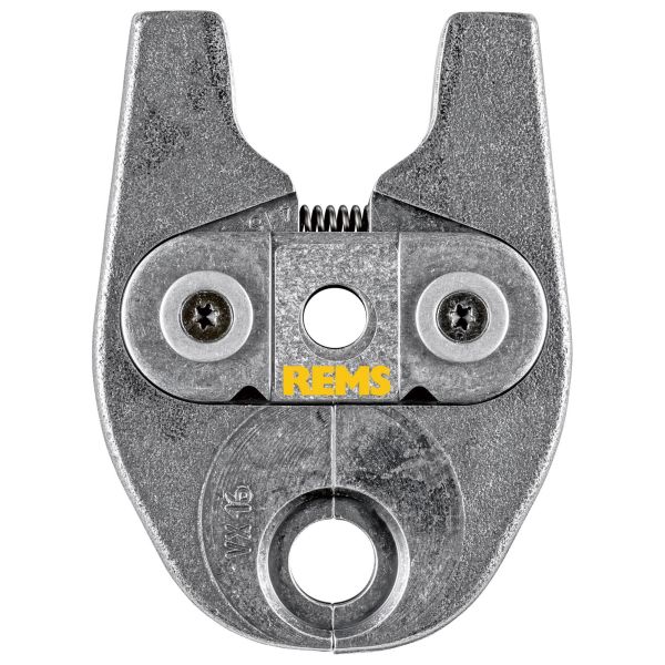 REMS 578552 Mini er en svingbar monoblokkpressbakke med VX-kontur av type VX 16 (PZ-2B). Pressbakken har en svært slitesterk og kompakt konstruksjonsform samt lav vekt takket være en spesiell utførelse av presstangtilkoblingen. Drift med REMS Mini-Press ACC, REMS Mini-Press 22 V ACC. Presskonturene er systemspesifikke og tilsvarer presskonturene i respektive pressmuffesystem. Dermed feilfri systemkonform og sikker pressing. Pressbakken har en svært presis og maskinelt nøyaktig CNC-bearbeidet avrundet presskontur. Dermed betydelig lavere produksjonstoleranser sammenlignet med en presskontur som kun er støpt.
