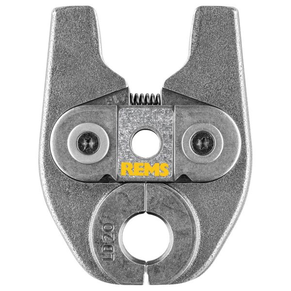 REMS 578654 Mini er en svingbar monoblokkpressbakke med LD-kontur av type LD 20 (PZ-2B). Pressbakken har en svært slitesterk og kompakt konstruksjonsform samt lav vekt takket være en spesiell utførelse av presstangtilkoblingen. Drift med REMS Mini-Press ACC, REMS Mini-Press 22 V ACC. Presskonturene er systemspesifikke og tilsvarer presskonturene i respektive pressmuffesystem. Dermed feilfri systemkonform og sikker pressing. Pressbakken har en svært presis og maskinelt nøyaktig CNC-bearbeidet avrundet presskontur. Dermed betydelig lavere produksjonstoleranser sammenlignet med en presskontur som kun er støpt.