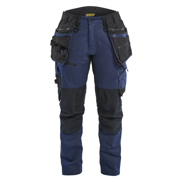 Slitesterk håndverksbukse i 2-veis stretch/CORDURA-denim som gir svært god komfort, med stretchpaneler i skritt, bærestykke og knehaser for optimal bevegelsesfrihet. Denne modellen med damemodell/passform har høy linning bak, avtakbare spikerlommer samt avsmalnende ben, såkalte tapered legs.