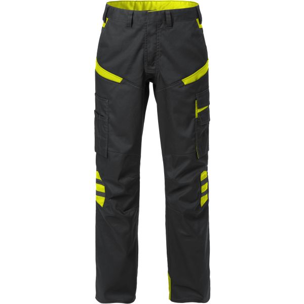 Moderne bukse med feminin passform for arbeidere innen service- og industrisektoren. Produsert i et lett og slitesterkt materiale med mekanisk stretch som gir behagelig bevegelsesfrihet. Diskrete mørkgrå refleksdetaljer for økt synlighet. Godkjent for industrivask. Inngår i Fristads Fusion-kolleksjon. Materiale: 65 % polyester og 35 % bomull. Mekanisk stretch. Vekt: 260 g/m². Vaskeanvisning: maks 85 °C.