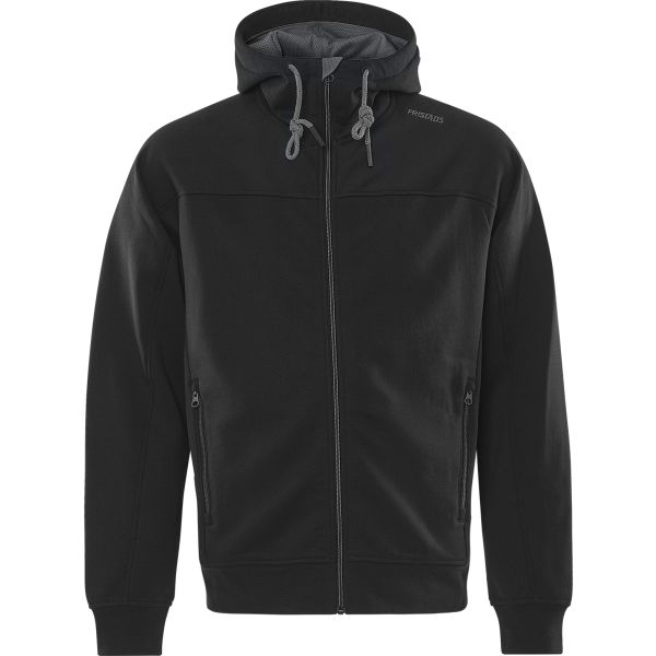 Art.nr: 4074123Hettegenser i delvis resirkulert materiale med justerbar hette med meshfôr. Lang glidelås helt opp i kragen, 2 frontlommer med glidelås, ribbestrikkede mansjetter i ermeavslutning og nederkant. Børstet innside.