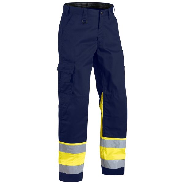 Lett varselbukse med moderne passform, god slitestyrke og romslige benlommer. Buksen egner seg også for arbeid innendørs. Løkker, hvorav en med D-ring, baklommer, benlomme med belg, klaff og pennelomme, ekstra lomme, telefonlomme og ID-kortlomme. Benlomme med plass til dokumenter, innvendige knebeskyttelseslommer, skråstilte lommer, telefonlomme, C-størrelser kan forlenges til C150-størrelser. Sertifisert iht. EN14404 sammen med EN14404-sertifisert knebeskyttelse, art.: 4018, 4000, 4008. Materiale: 65 % polyester, 35 % bomull, twill, vannavvisende finish, 240 g/m².