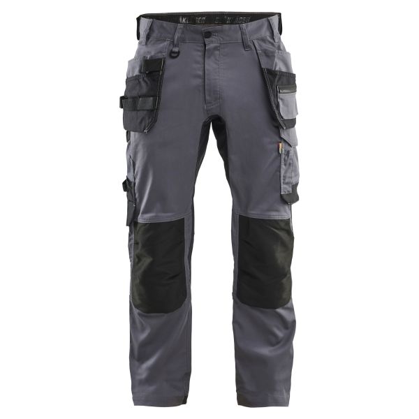 En behagelig, lett håndverksbukse i et tynnere 2-veis stretchmateriale med paneler i 4-veis stretch som gir optimal komfort akkurat der den trengs mest. Buksen har faste spikerlommer, bunnmatet kneputelomme med CORDURA-stretch, praktiske forsterkede lommer, tommestokklomme, frontlommer samt hempe for hammerholder på både venstre og høyre side. Finnes også som damemodell 7132.