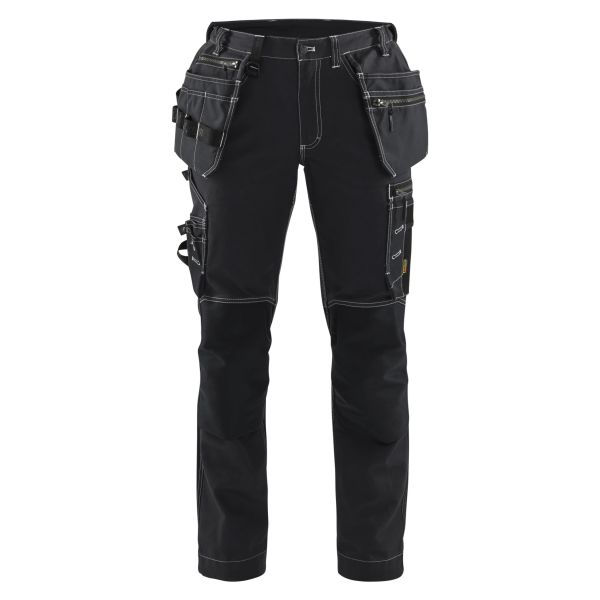 Denne håndverksbuksen med damemodell i bomull er slitesterk, komfortabel og full av praktiske detaljer som hjelper deg gjennom hele arbeidsdagen. Til tross for det kraftige materialet er buksen både luftig og smidig å bruke. For at buksen skal oppleves ekstra lett og behagelig å ha på, er den utstyrt med paneler i 4-veisstretch bak, i bærestykket, på leggene samt ved lommeåpningene. I tillegg har den forsterkede knelommer i CORDURA-stretch, noe som samlet gir en svært høy komfort. Finnes også som herremodell 1590.