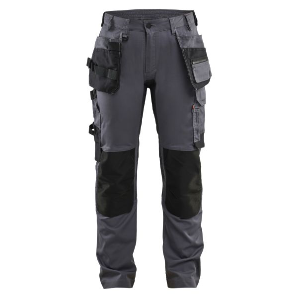 En behagelig, lett håndverksbukse med damemodell i et tynnere 2-veis stretchmateriale og paneler i 4-veisstretch som gir optimal komfort der den trengs mest. Buksen har faste spikerlommer, høy og justerbar midje, bunnmatet knebeskyttelseslomme med CORDURA-stretch, praktiske forsterkede lommer, tommestokklomme, frontlommer samt hempe for hammerholder på både venstre og høyre side. Finnes også som herremodell 1750.