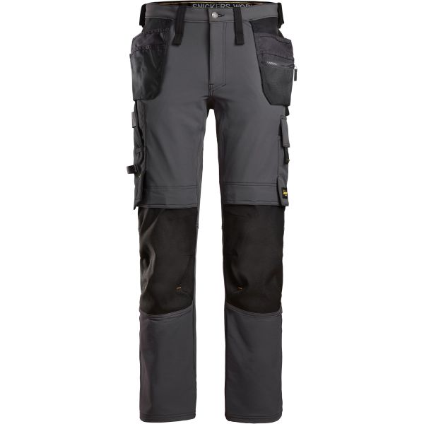 Snickers 6271 er en grå / svart arbeidsbukse med hylsterlommer for alle typer arbeid året rundt. Disse buksene er laget av slitesterkt materiale med 4-veis stretch som gir den komforten og bevegeligheten du trenger i det krevende daglige arbeidet.