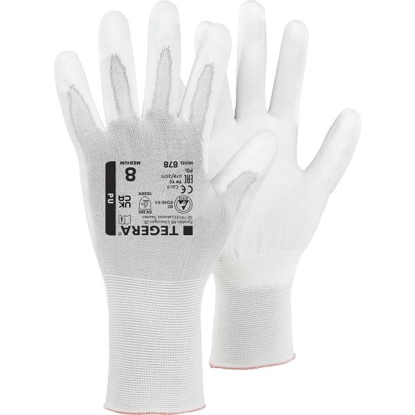 TEGERA 878 er Tegeras tynneste ESD-hanske. Den er håndflatedyppet i PU for godt beskyttelse og grep, og er svært behagelig å bruke. Egnet for presisjonsarbeid der det kreves maksimal fingerfølsomhet og bevegelighet. 18 gg fiber, god ventilasjon for komfortabel bruk gjennom en hel arbeidsdag.