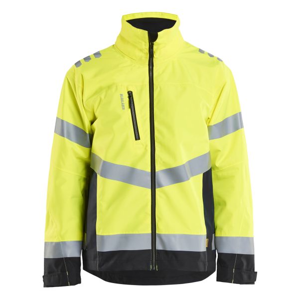 Slitesterk skalljakke i varsel med tapede sømmer og vind- og vanntett yttermateriale som beskytter deg mot vind, fukt og ytre slitasje. Jakken har et tynnere meshfôr og skjulte glidelåser bak på ryggen som gir ekstra ventilasjon ved behov. Kan kompletteres med hette i varselstoff med trykknapper (modell 2166 meshfôret, 2165 lett fôret eller 2175 hjelmtilpasset). Finnes også som damemodell 4761.