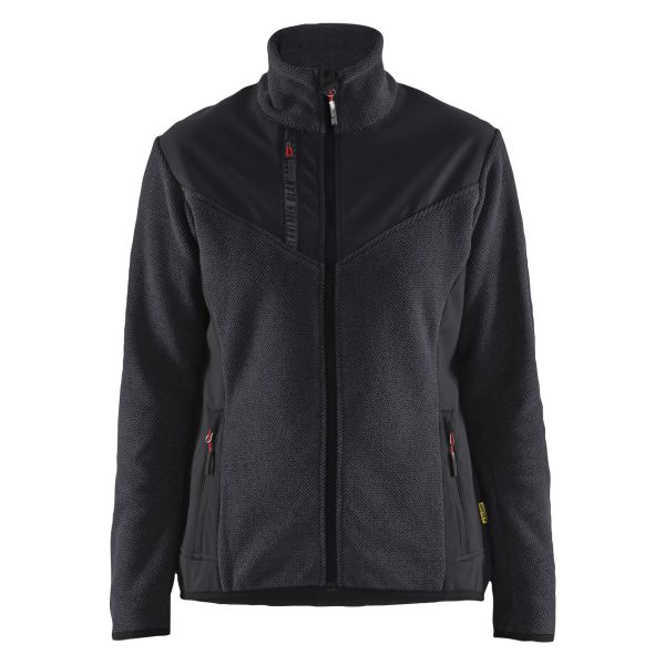 Strikket jakke i damemodell med krage, stilig design og svært behagelig fleecekvalitet. Denne jakken med toveis glidelås i fronten er laget i et unikt materiale som best kan beskrives som tredimensjonal fleece. Det børstede materialet gir jakken sitt utseende med 3D-mønster, elastisk og smidig komfort samt god varme når det trengs som mest. Jakken er forsterket med softshellmateriale på ermer, skuldre og nederst på ryggen for økt slitestyrke, og siden det ikke er softshell i armhulene, er ventilasjonen forbedret. Har meget gode profileringsflater, men passer like godt på jobb som i fritiden. Finnes også som herremodell 5942.